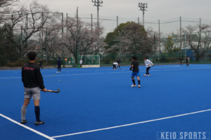 日吉駅からキャンパスと反対方向に15分ほど歩くと、蹴球部やソッカー部、野球部、そしてホッケー部がグラウンドを構える一画にたどり着く。體育會ホッケー部は、男女ともにこの慶應義塾大学日吉グラウンドにてトレーニングを積んでいる。