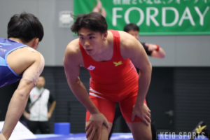4月25日。JOCジュニアオリンピックカップ2026年U20が開催される。慶大レスリング部からは3選手が出場予定で、注目は何と言ってもフリースタイル74kg級の瀧澤勇仁(経2・慶應)とフリースタイル86kg級の岡澤ナツラ(法2・慶應)。慶應義塾高校時代に日本一を経験した2人は、大学入学後も順調に成長を遂げている。今回、ケイスポではJOC直前企画と銘打って、2人に対談インタビューを行った。今年で5年目の仲となる2人の関係性やエピソード、さらには優勝すれば世界選手権出場が決まるJOCに向けての意気込みも語ってくれた。