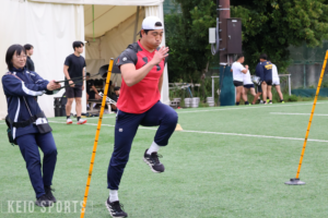 石野:ハイボールは強くなった。伊吹央(令8経卒)さんが毎日やってたから、一緒にやろうと思って。航希(森航希=環4・桐蔭学園)にハイパントを蹴ってもらって、練習してました。