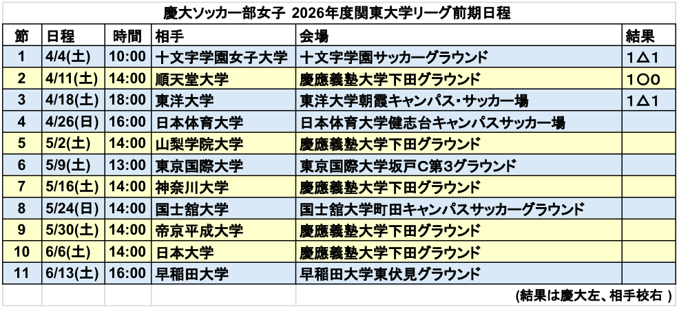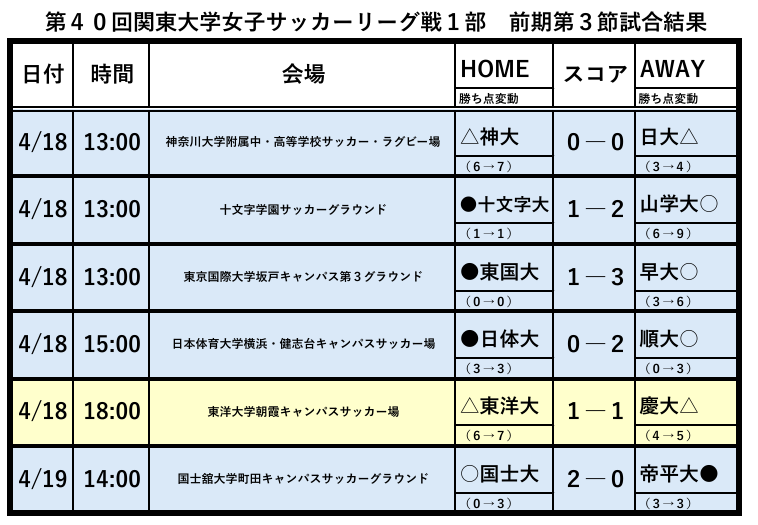 次節はアウェイの日本体育大学戦。4月26日の16:00キックオフだ。