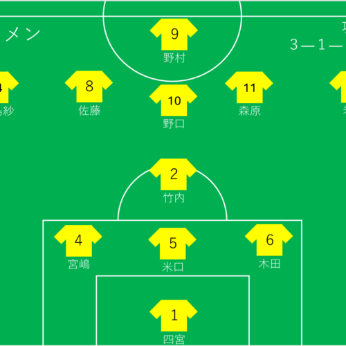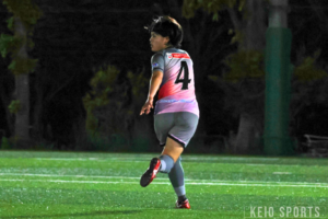 慶大はこの日もスタメン・配置ともに変更はなく、開幕から3試合続けて同じ陣容で臨む。攻撃時3―1―5―1。守備時5―4―1のシステム。守備時は右ボランチの竹内あゆみ(看4・日ノ本学園)と左ボランチの野口初奈(環4・十文字)が、攻撃時は竹内がアンカー。野口がトップ下の縦関係となる。