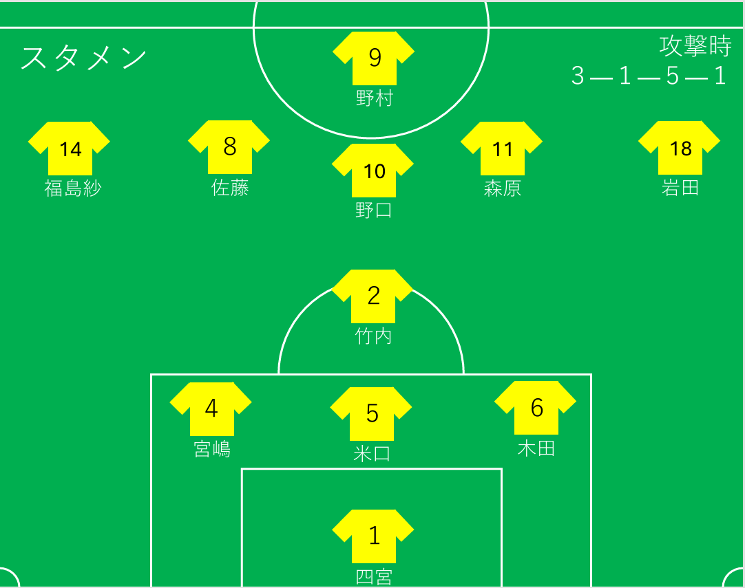 また、得点シーンを含め攻撃の良い形も見られた。森原(74分からは田中紗)と佐藤が相手ダブルボランチを引き付け、野口が相手CB1枚を吊り出し、野村と相手CBとの一対一のスピード勝負に持ち込んでチャンスをつくっていた。相手2CBが出てこない際は中盤での数的優位を突き、抜群のパスワークで前進していた。