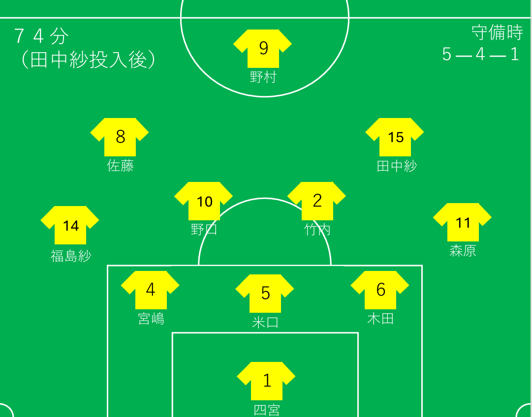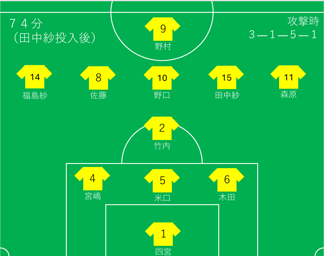 一方、押し込まれる時間が続いたこともあり、強みである両WBの岩田(74分からは森原)・福島紗の推進力やクロスを活かしたサイド攻撃はなかなか仕掛けられなかった。