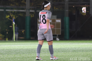 慶大唯一の選手交代は74分。守備でのハードワークが光った右WB・岩田理子(総3・十文字)に代え、田中紗莉(総3・市ヶ尾/日体大SMG横浜U18)を投入。田中紗は右シャドウに、右シャドウの森原が右WBのポジションに動く。