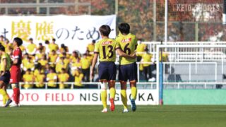 その後も攻め込まれる展開が続くが、齋藤らがサイドからチャンスを演出する。1点でも返したい慶大は、65分に柳瀬文矢(法4・駒大高)を、74分には三浦大其(経2・慶應)を送り込む。CKなどでチャンスを生み出すも、なかなか得点には至らず。ピンチも防ぎながらも懸命に1点目を狙う。