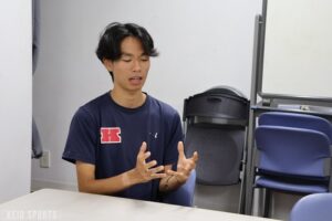 :僕は順天堂大学の主将・石岡大侑(スポ科4・出水中央)です。高校時代からのチームメイトで、当時は僕が主将、彼は全国トップクラスのタイムを持ちながらも、チームではわがまま王子のような存在でした(笑)。大学1、2年生の頃は苦戦していましたが、今は順天堂大学の主将としてチームを盛り上げる優れたキャプテンになっています。メディアや本人、後輩からもその姿を聞きます。飲みに行って話す中でも参考になることが多く、「あいつが頑張っているから俺も頑張ろう」と刺激を受けています。自分のチームも負けたくないという思いが、結果を出すモチベーションになっています。