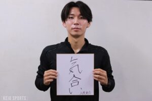 上原:僕は“気合”って書きました。言い換えたら「後悔なくやりたい」っていう意味なんですけど、長距離種目って、結局はもう練習もきついし、日々の生活、食事制限とかも全部きついです。気合がなきゃやってらんない、最後は根性みたいなとこがあるので。それは選手だけでなくサポートも含めて、ミーティングが夜遅くなるとか練習が朝早いとか全部ひっくるめて、って感じです。僕はいつもいろんな人に「気合で行こう!」とか言ってるんですけど、日々の僕の大事にしているモットーっていうか、そういう言葉なので“気合”って書かせていただきました。駅伝主務として予選会に向けて妥協なく準備を積み重ねていきたいと思っています。