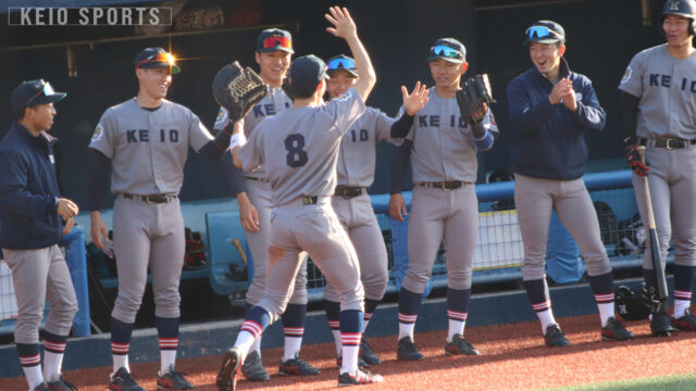 11月22日(土) 第8回大学野球オータムフレッシュリーグin静岡 常葉大学浜松キャンパス戦 @西ケ谷総合運動場野球場初回、先頭・山本海(経2・慶應)が中前安打で出塁すると、その後相手の失策により三塁へ進塁し、田川遼(政2・慶應志木)の遊ゴ...